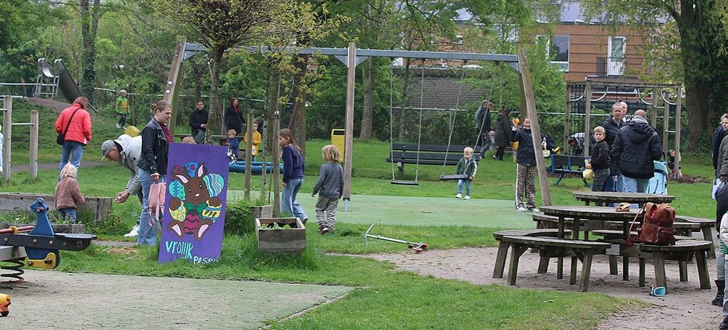 Het paasfeest start om 11.00 uur in en rondom de speeltuin en duurt tot circa 13.00 uur. Voor de allerkleinsten begint de dag met een vrolijke zoektocht naar plastic paaseieren die verspreid liggen in de speeltuin. De gevonden eieren kunnen worden ingeleverd bij de vrijwilligers, waarna de jonge speurneuzen een zakje met lekkernijen ontvangen.